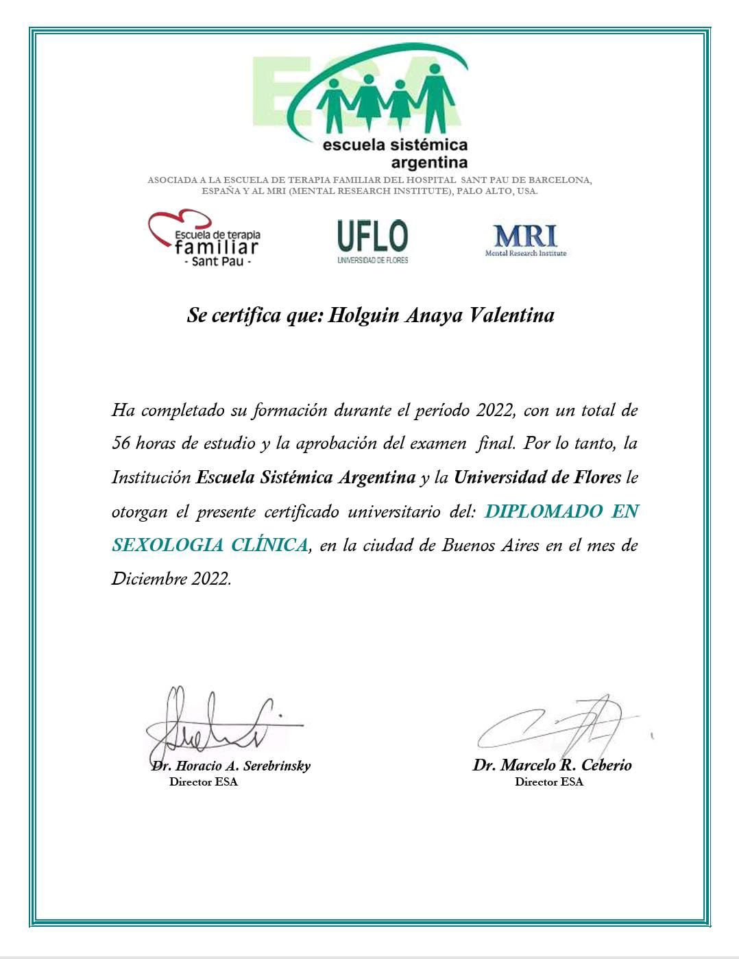 - Escuela Sistemica Argentina 2022, Diplomada en Sexología Clínica